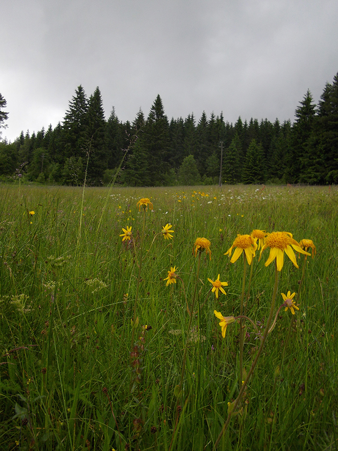 Auf der Wiese hinter dem Haus wächst Arnika, Knabenkraut, andere wilde Orchideen und viele